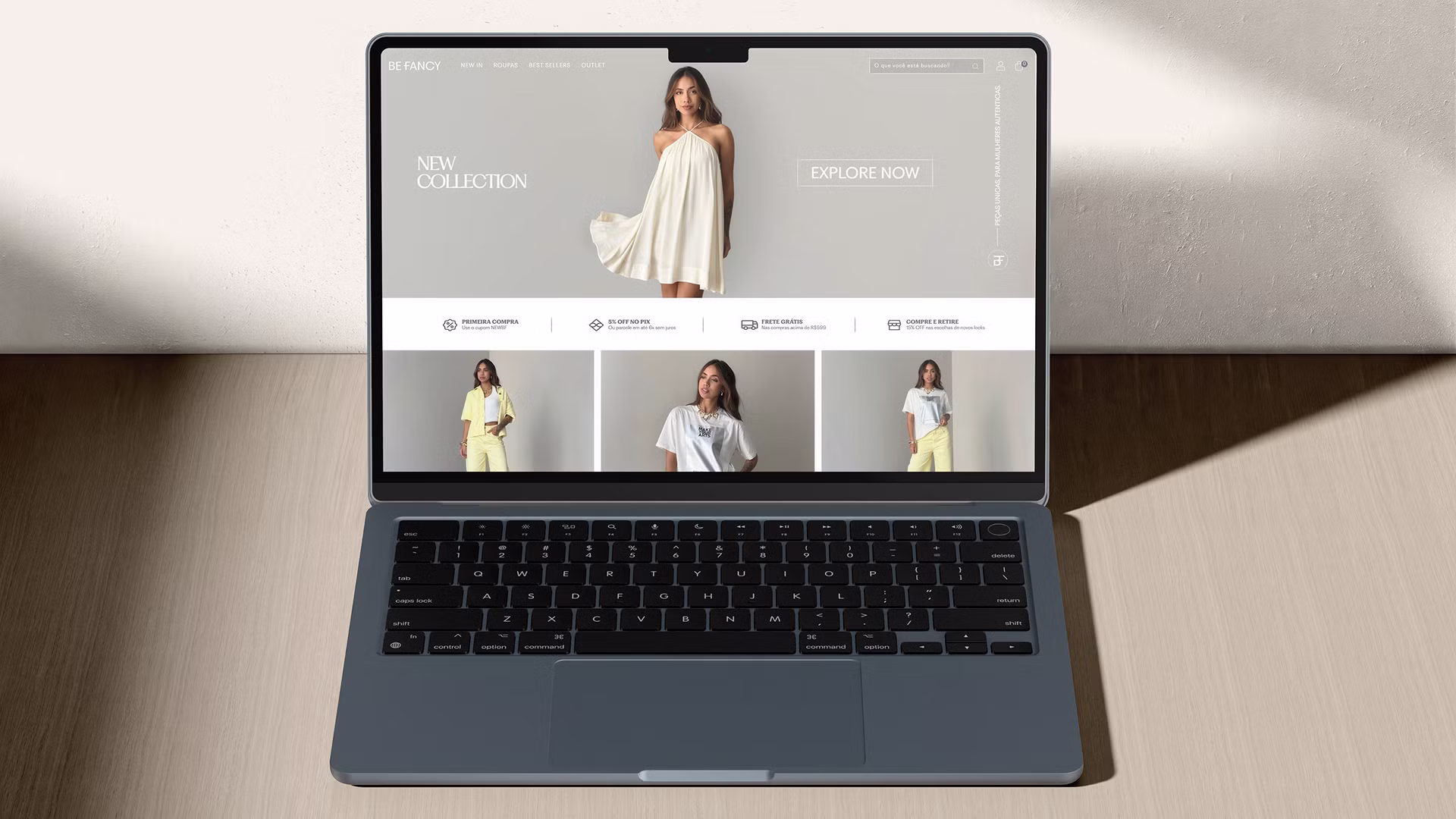 A nossa abordagem foi reposicionar a Be Fancy como uma marca com olhar editorial, curadoria intencional e discurso de moda com peso. Mapeamos oportunidades de diferenciação no mercado e definimos uma narrativa que une elegância e proximidade. E assim, nasce o slogan “Vista o seu momento", apoiada na missão de empoderar mulheres a expressarem sua versatilidade.