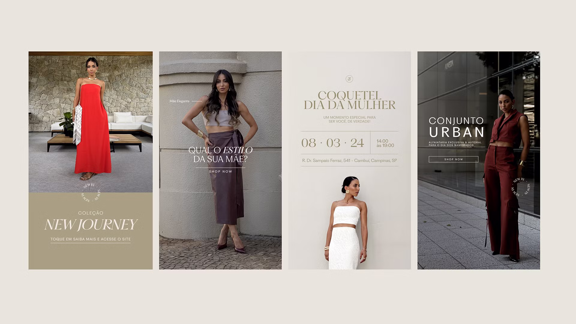 A nova identidade visual equilibra a sofisticação e a acessibilidade — traduzindo com clareza o posicionamento da marca. Criamos um sistema que valoriza a estética feminina, contemporânea e versátil, pronto para viver nas coleções autorais, lojas físicas, redes sociais e materiais promocionais.